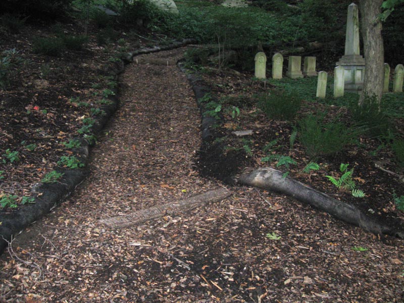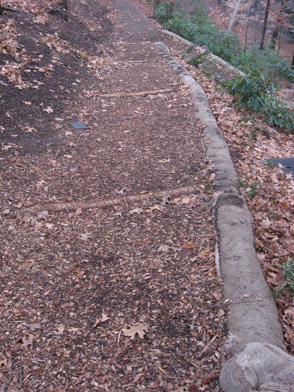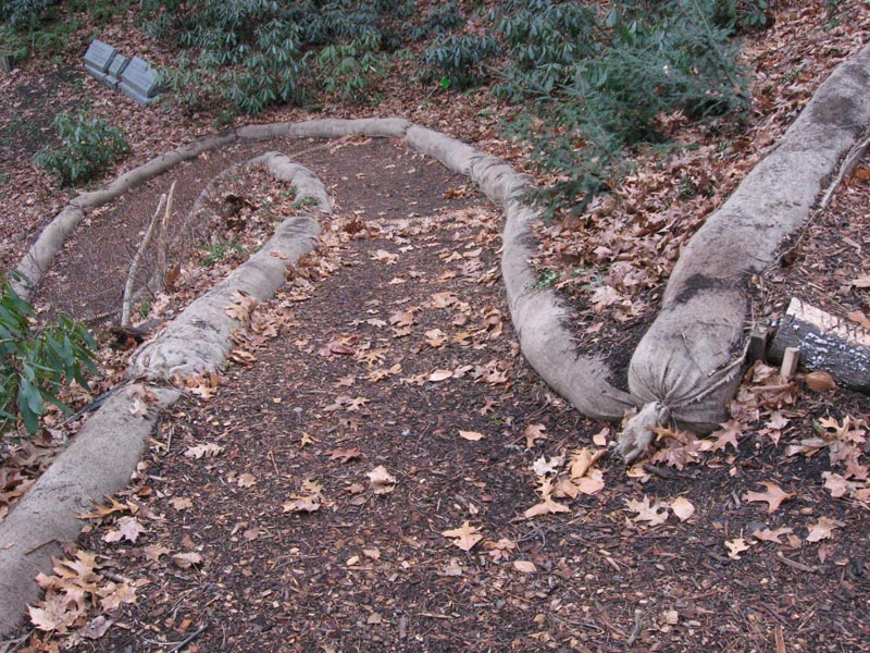 - Next, Groundscapes Express, Inc placed dead trees and stumps to create water bars and stabilization.