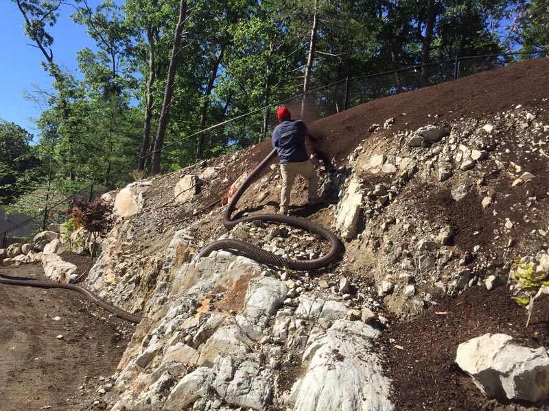 • Utilizes our FiberRootMulch™ & PowerBoost mulch ™ blend of shredded wood and compost to form a stable, long-lasting cover on open and disturbed soils
